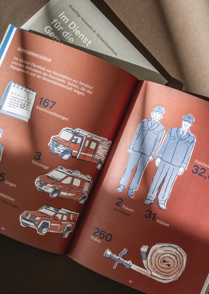 Darum setzen wir auf ein neues Konzept: Feuerwehrgeschichte im Magazinstil – modern gestaltet, bildstark, klar strukturiert. Mit kurzen Texten, Infografiken und echten Einblicken in Einsätze, aktuelle Herausforderungen und das Miteinander in der Wehr.